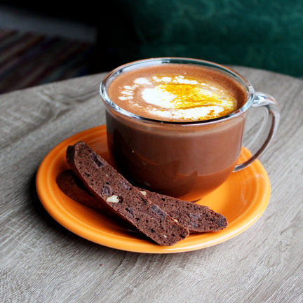 - Place 7 ounces (just over half) of the TCHO chocolate and the butter in a saucepan over low heat, gently stir until melted and smooth. Set aside.