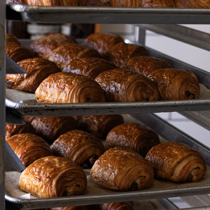 Flaky croissants with rich and fudgy 60% Dark Chocolate Batons. Recipe from Republique in Los Angeles, CA and demonst...